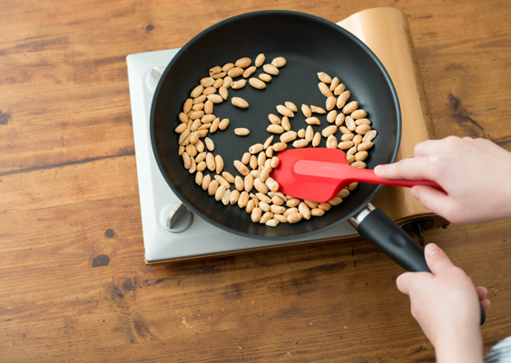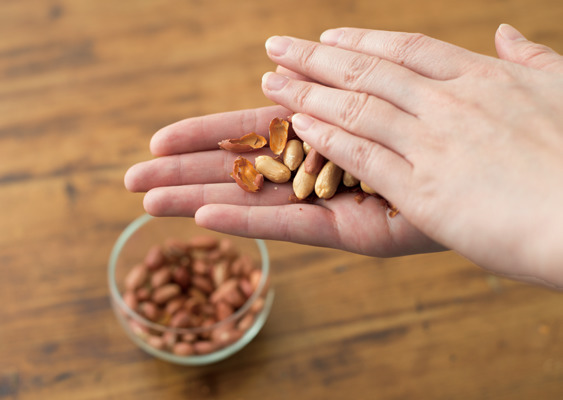 ➊ピーナッツの皮をむく